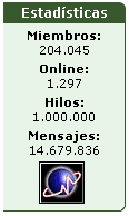 squall-ivan escribió:Preveo una crecida en los hilos justo cuando queden poquitos, para intentar ser el 1.000.000 xDDD
