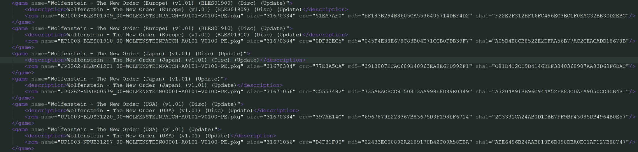 Para poder hacer una buena auditoría y catalogación/archivo de los ficheros, hay que usar un buen .dat. Yo uso los de datomatic.no-intro.org, donde en el caso de PS3, tienen un .dat para el contenido de PSN y otro para las actualizaciones. Tened en cuenta que estos .dat los crean usuarios como nosotros altruistamente, así que es posible que no estén perfectos al 100%, pero es algo que con el tiempo van actualizando y mejorando.