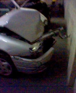 os dejo una foto hexa con mi mobil del estado del coxe despues del accidente, es de mala calidad pero para ke os hagais una idea. hay ke decir ke este es el lado ke kedo mejor. pero ya hare otras si puedo en ke vereis ke se puede tocar el radiador del coxe desde dentro del habitáculo.