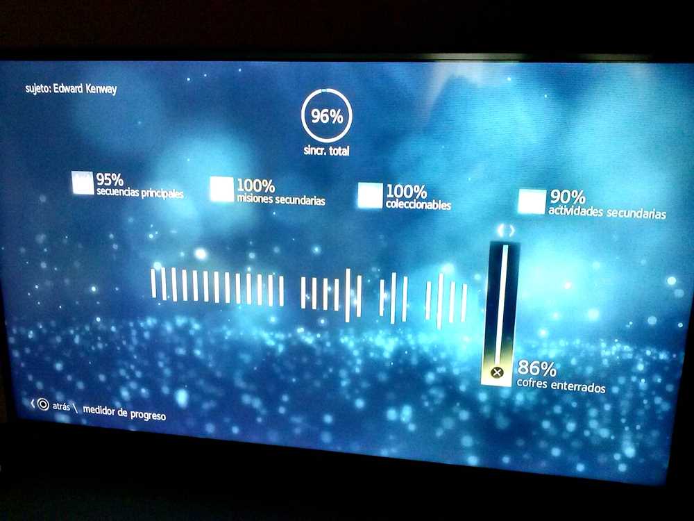 Lo que sí completé al 100% fueron las misiones secundarias (cazas templarias, contratos de asesino, tabernas, contratos navales, fuertes navales), así como los coleccionables (atalayas, estelas mayas, fragmentos del Ánimus y cofres).