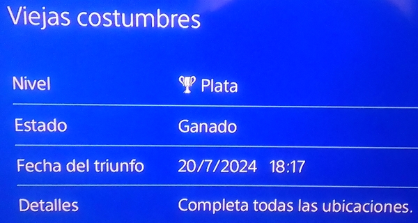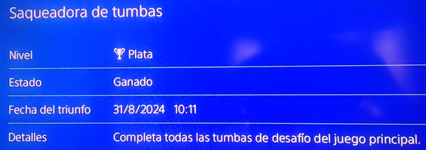 Y luego invertí alrededor de 1 hora y media en completar los trofeos que me faltaban (el de quemar a 30 enemigos con flechas de fuego y vasijas de aceite me dio bastante la lata), para obtener el