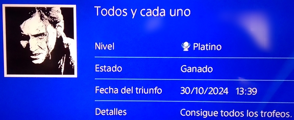 Como no me apetecía empezar ningún juego y la mecánica de TLOU2 me parece muy buena, he acabado platinándolo.