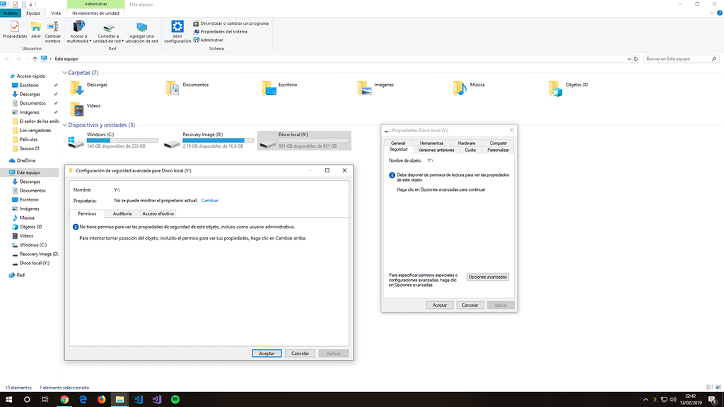 Si... me dice que he tomado permisos correctamente del disco pero voy a Equipo y al abrirlo me dice el mismo error...