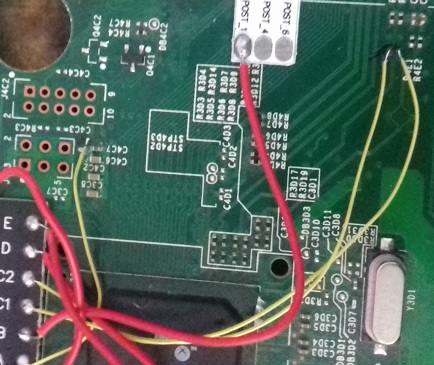 Vaya rollo. Desconecto y vuelvo a repasar las soldaduras. Vuelvo a conectar, enciendo la consola, y sigue sin salirme nada en la pantalla, pero ahora hay un cambio. La luz verde de la ACE V5 que se encendía y apagaba, ahora no se enciende. Fufff, que estará pasando, me habré cargado esas resistencias intentando hacer el puente para conectar los puntos P1 y P2??