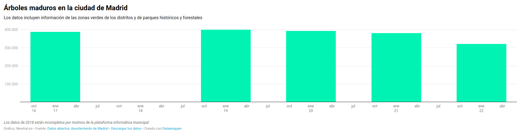 En Madrid tenemos un problema en cuanto a la distribución de masa arbórea. Es evidente. Si no, pasearos por el centro y por los barrios del sur. Me parece muy bien que seamos la ciudad del universo con más árboles. Pero si todos están en zonas muy concretas, sigue habiendo un problema en el resto de la ciudad, que es de lo que se está hablando. El resto de la ciudad debe aumentar su número de árboles, y este número está yendo hacia abajo. Pero no, en vez de vigilar esto agravamos el problema relajando la ley de protección de árboles.