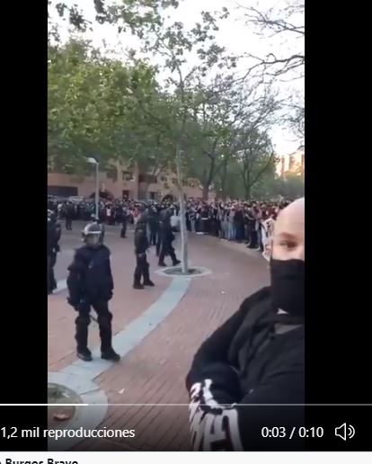 Un fotograma donde se ve la distancia antes del encaramiento, se ve claramente el cordon policial que se saltaron los de VOX:Capture.JPG
