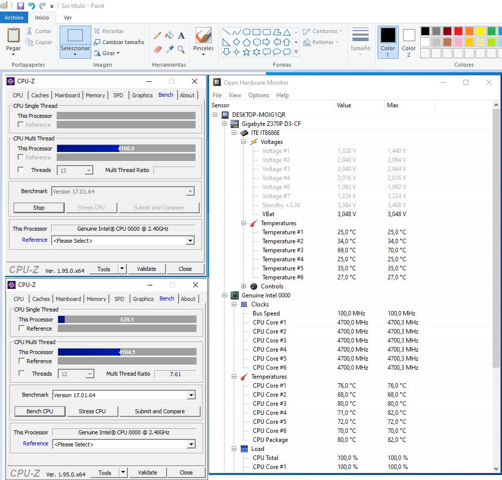 De temperatura maxima durante el test cpuz 80 grados en un nucleo, renovare la pasta termica porque era pasta térmica mala y la he visto un poco seca.