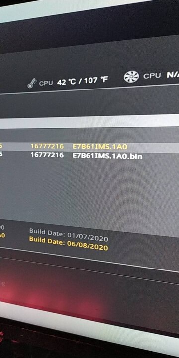 Rhazt escribió:@Earthquake.cL Justamente eso iba hacer, estuve leyendo en el foro que si renombraba el archivo con uno de una bios original de MSI podria funcionar y efectivamente, fui a la pagina oficial y descargue la ultima bios y copie el nombre y ademas probe cambiando el formato del archivo de bin a .1A0 y ahora me aparecen las dos bios cuando voy a flashear, pero ahora nose cual usar, si la con formato .bin con el nombre modificado o la otra con formato .1A0