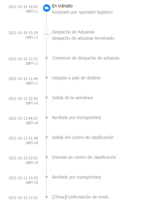Que dice: Proximamente llegara tu envio a España y podras realizar los tramites aduaneros correspondientes. Te avisaremos. ¡Mantente pendiente!