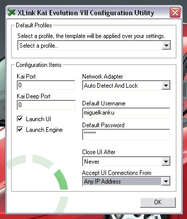 Esta es mi configuración del KAI. Lo de los puertos, pues no sé, yo no he tocado nada. De todas formas, ¿alguien sabe que puertos usa el KAI? Aún así, el KAI si me detecta la XBox, por lo que si fuera tema de los puertos supongo que tampoco me la detectaría.