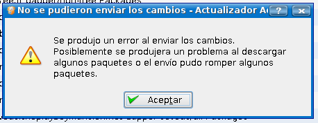 ¿Qué información útil pretendes que saquemos de ese error? Pega la salida de la consola (usando aptitude o apt-get), con los paquetes que intenta actualizar y el error que da.