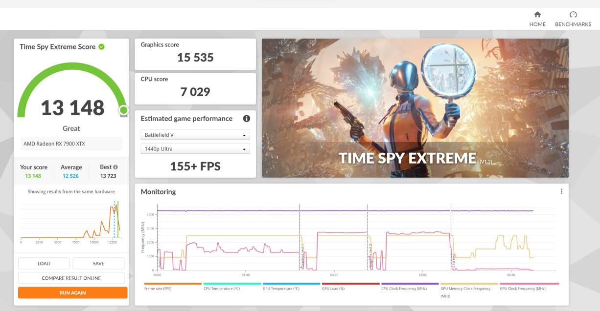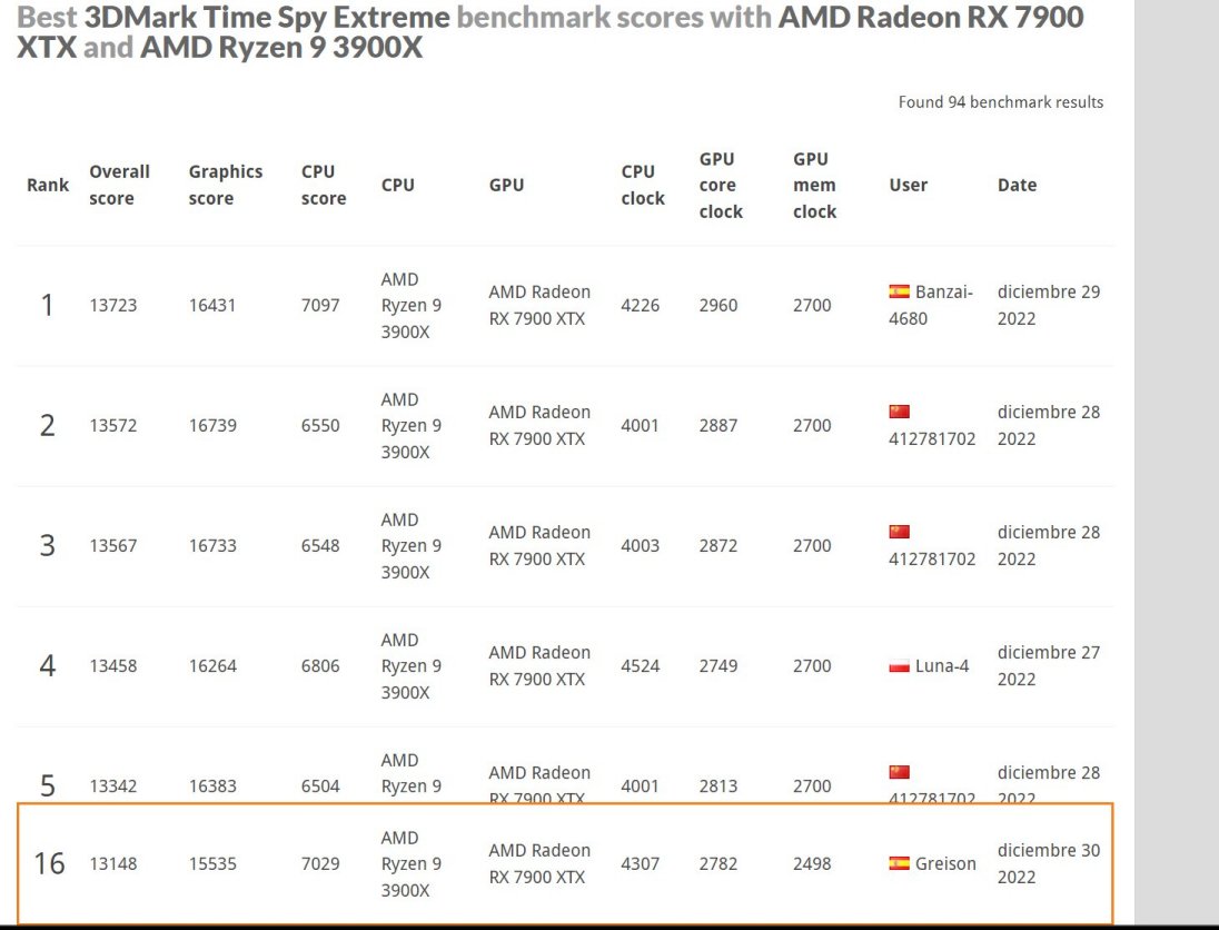Pacorrr escribió:@docjones en Time Spy lo importante es el gpu score, la puntuación que pones es la de gpu o la total? Pon el enlace a la puntuación, cuando acaba el bench hay un botón que pone "compare online" o algo así. El Superposition de ser el preset 1080p extreme a mí me parece correcto.
