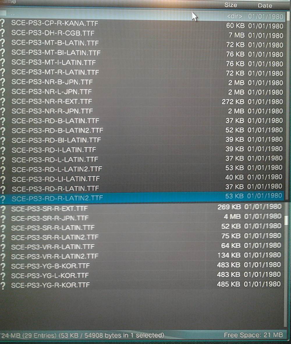La fuente que he elegido, me gusta bastante, tiene los caracteres occidentales (hasta la ñ) y creo que es la misma que vemos cuando nos situamos en un juego Bluray en el sistema, por lo que tiene lógica que soporte todos los caracteres posibles (y sea una fuente enorme). Total, si es una línea solo, jeje.