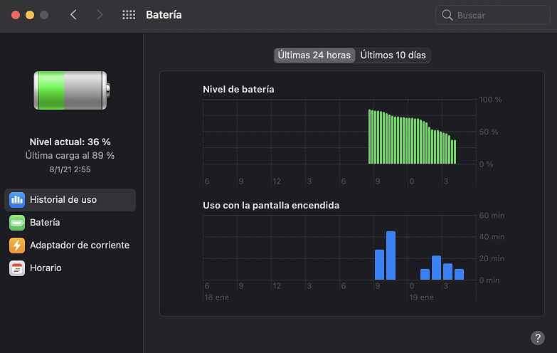 Para los que tenéis el Air m1, una pregunta con respecto a la batería, tengo activado lo de carga optimizada. Si lo dejo con el Safari abierto con unas 3-4 pestañas, y lo que tengo son imágenes para proyectar a través de un Apple TV duplicando la pantalla, y uso de safari esporádicamente y la aplicación mail en segundo plano y el monitor de actividad me dice que a este ritmo de uso con la batería me dice tiempo restante 6:40 horas.