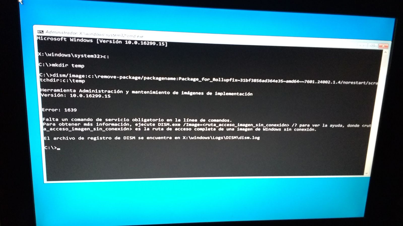 dism /image:c:\ /remove-package /packagename:<nombre del paquete> /norestart