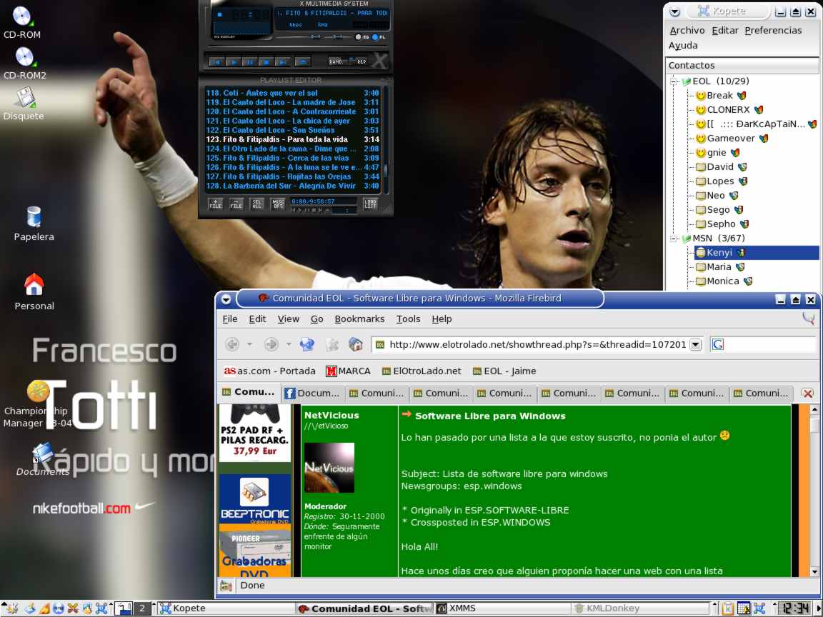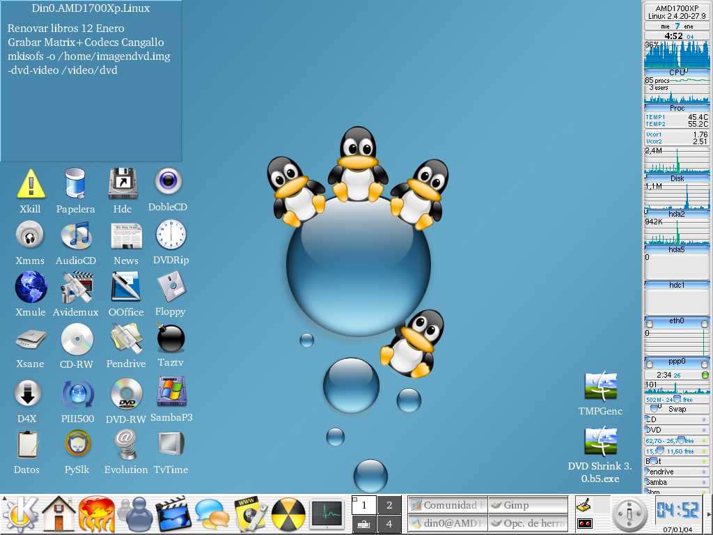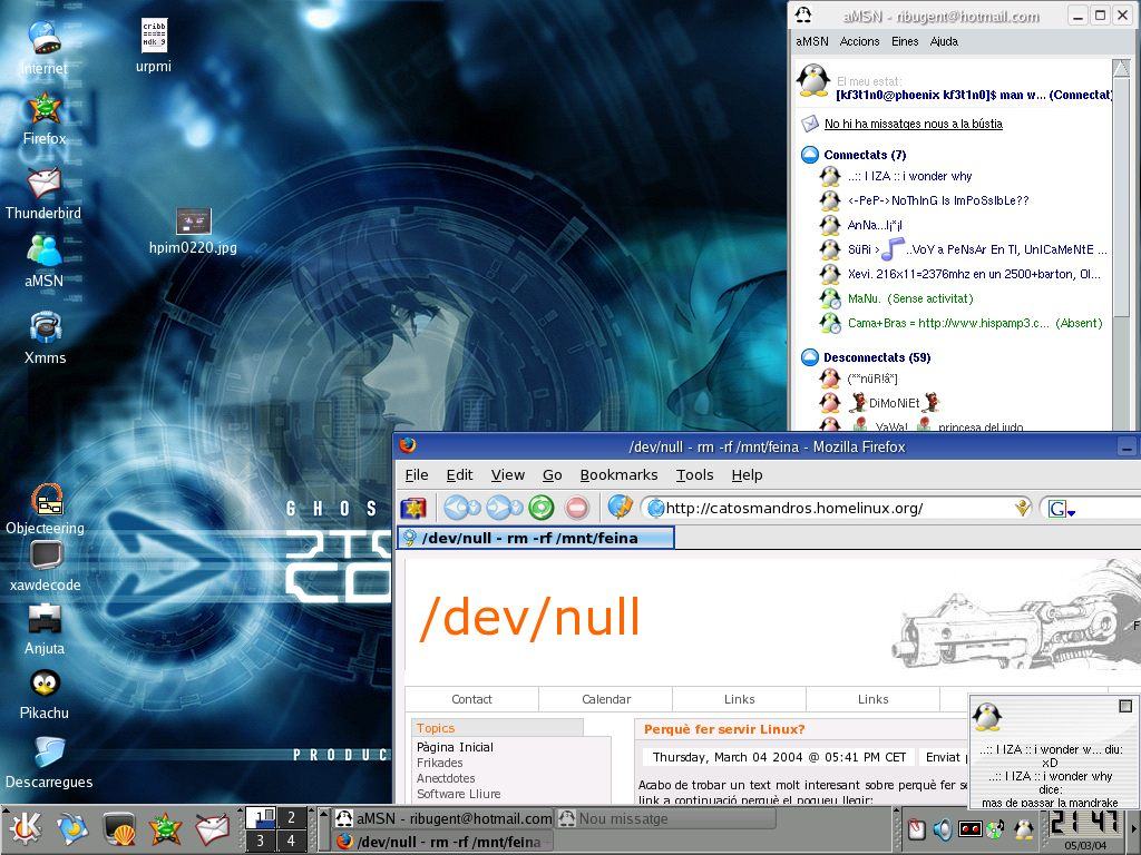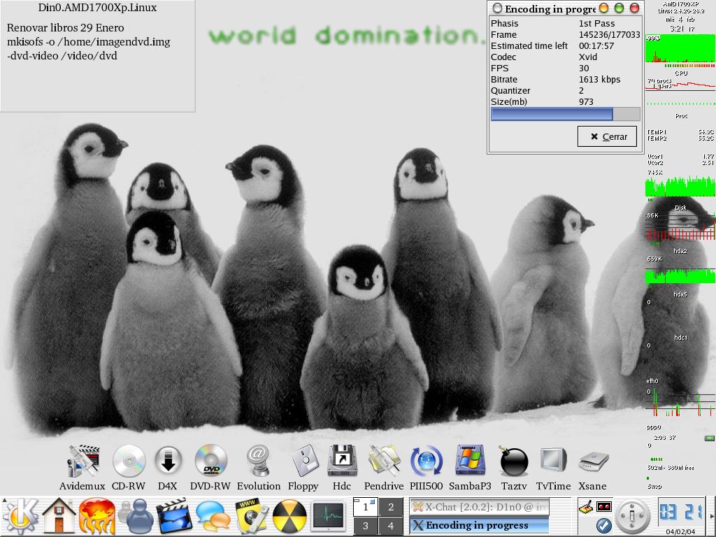 Aplicaciones instaladas : Sylpheed 0.9.9, XChat 2.07, Gaim 0.75, Xine, Frozen Bubble, etc...