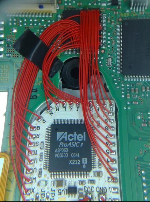 Luego el orden de soldadura... si eres diestro (coges el estañador con la derecha) pues vas soldando de izda a derecha las patillas del integrado, si eres zurdo al revés, para no soltar un cable que ya hayas estañado al integrado... y yo antes de poner el chip, pongo todos los cables al integrado y tapo los extremos ke luego irán al chip con cinta aislante (para aislarlos) y pruebo a ver si funciona el lector sin chip, si funciona lo instalo y si no reviso bien la instalacion ^^