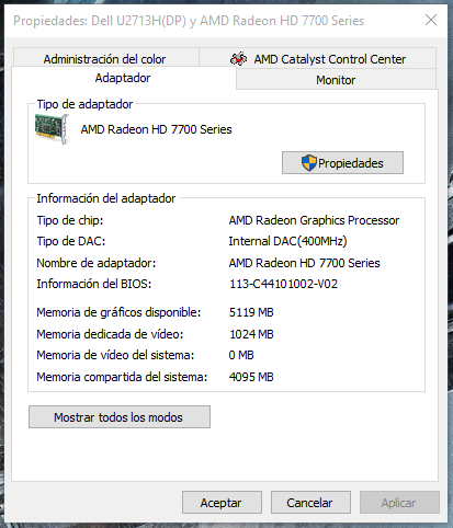 En escritorio damos botón derecho, configuración de pantalla, configuarion de pantalla avanzada, propiedades del adaptador de pantalla, y ahí ya te pone toda la info....