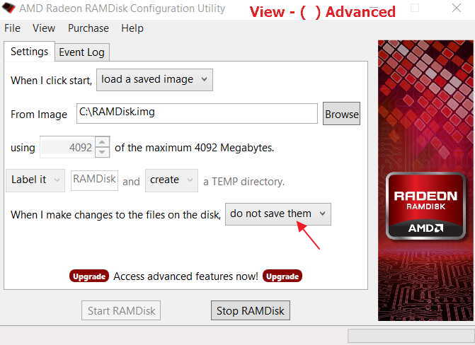 Antonio R escribió:TRASTARO ¿Como consigues que el ramdisk AMD Raedon no guarde en disco duro el ramdisk cuando se apaga el ordenador, de manera que al encenderlo este vacio?