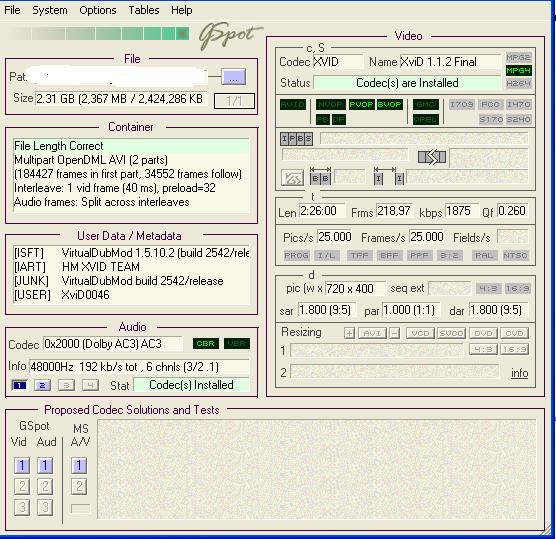 El fichero me da la información adjunta con el GSpot. ¿Que he de recodificar? ¿Con que programa? No quiero perder calidad de imagen.