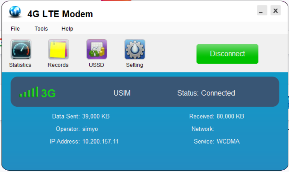 Aquí se ve como está conectado, tiene IP pública pero la conexión es 3G y no da cargado ninguna página, he probado tanto en modo dongle como en modo Wifi y pasa lo mismo, conexión 3G (nada estable) y navegación super lenta.