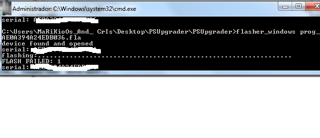 Al tema, pues lo he probado todo, descargandome los archivos .fla con el PROXY descargandomelos desde el Downgrader 1.2 i 1.3, flasheando desde SIMBOLO DEL SISTEMA, desde el Downgrader 1.2 i 1.3 i siempre me sale este erros flash failed 1.Probado en todos los puertos USB que tengo, ya no se que hacer si alguien me pudiera ayudar... se lo agradeceria millones!!!! os dejo una captura por si las moscas: