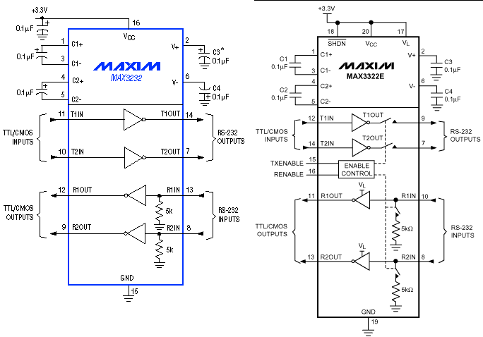El MAX3232CPE+, MAX3232CPE, MAX3232EPE+, MAX3232CSE+, MAX3232CWE+, MAX3232CWE, MAX3232CSE, MAX3232EWE+, MAX3232ESE+, MAX3232CAE, MAX3232CAE+, MAX3232ICAE, MAX3232CUE, MAX3232CUE+, MAX3232EUE+.