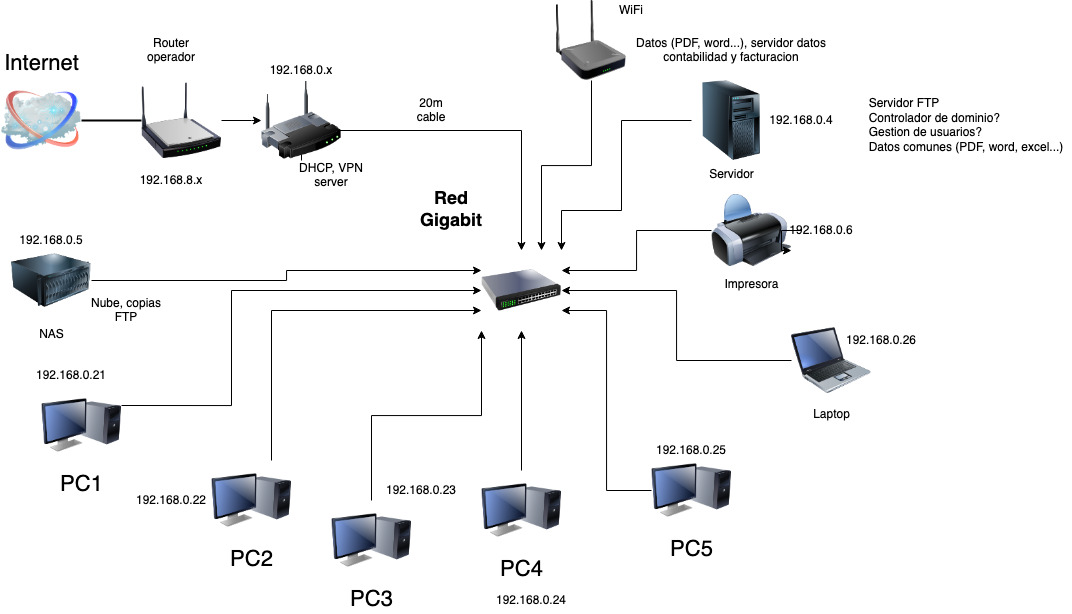 @luisvc91 Te comento algunos cambios que haría sobre tu planteamiento, aunque primero te recomiendo, que si quieres tener acceso vía VPN, configures la red interna con una IP menos utilizada para evitar problemas con el redireccionamiento vía VPN (En vez de usar la 192.168.0.x, pon por ejemplo la 192.168.5.x).