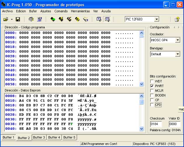 Hola, depues de mucho leer me acabo de poner a programar el 12f683 con mi t20, nada mas pinchar el pic en el zocalo, respetando la muesca, me di cuenta que el led se debilita mucho como que hay algun tipo de derivacion, lo quite revise la posicion los pines en los esquemas y nada, lo vuelvo a pinchar y lo mismo, le di a borrar y lo borra le doy a programar y nada error 000H, lo leo y veo que se ha quedado todo a ceros, no me deja borrarlo, ni programarlo, luego cai en la cuenta q mi t20 es uno estendido un modelo diferente al original y comparando con el t20 simple veo que el pin 3 en el original no se usa y en esta version esta puenteado con el uno a VDD pero en este pic el pin 3 es el GP4/AN3/T1G/OSC2/CLKOUT, vi q en el programador sencillo que sale en este foro solo se usan los pines 1-4-8-7-6, levante la pata 3 del pic, y ahora cunado lo pincho no se debilita el led, y consigo programar la eprom, pero no el codigo de programa que siempre me queda a ceros.