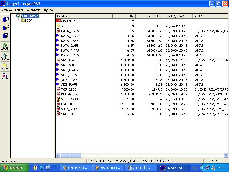 A ver si alguien me puede decir si ha conseguido hacer rular este juego con cogswap q yo no lo consigo. Tengo la votd-we7ie.bien cuya cue es Winning_Eleven_7_International_PS2_SPANISH_REPACK_DVDRIP-VOTD.up.Ronie.cue . Todavia no he usado el parche de Daroqui xq me escasean los CDs y he leido que no rula si no es la de P.I.M.P. A ver si alguno me dice cual puedo usar y donde encontrarlo. Os dejo el orden de los archivos para que sepais que imagen es.