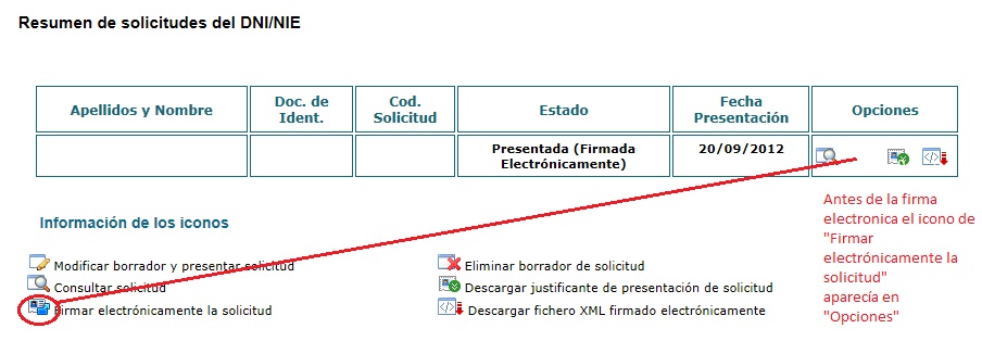Una vez cumplimentada la solicitud, deberá ser firmada por el interesado con cualquiera de los sistemas de firma electrónica establecidos en el apartado 2 del artículo 13 de la Ley 11/2007, de 22 de junio, de Acceso Electrónico de los ciudadanos a los servicios públicos y enviada por el procedimiento telemático establecido, quedando así presentada a todos los efectos."