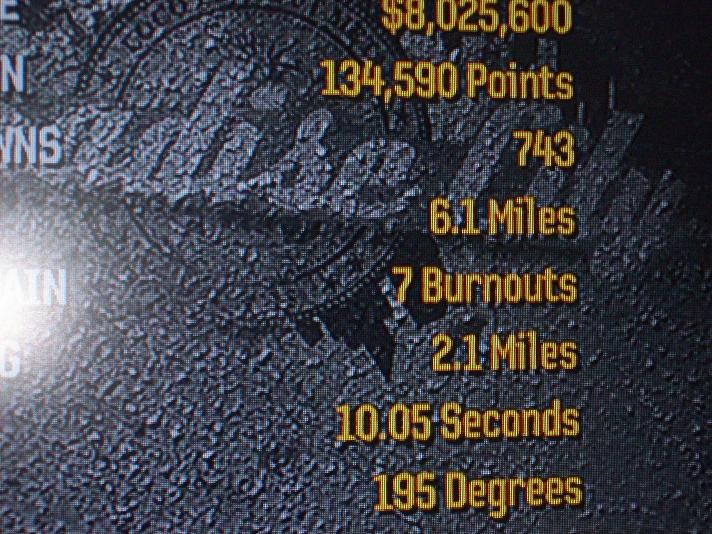 Los 1000 grados de giro puedes mirar en youtube cómo se hace... necesitas golpear un coche derrapando en una esquina antes justo de una rampa.... puedes usar el Hot Rod que es más pequeño y gira más, y golpear en el salto del acantilado, cerca de la mina.... pero ojo, que es complicado y no te saldrá a la primera... yo salté como 30 veces y me salió bien una única vez....