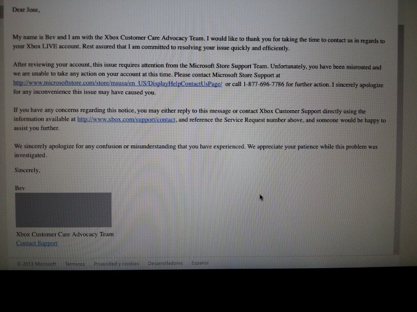 Traspaso mi gamertag a USA a ver si puedo así canjear el código, pero no, no me deja, cambio mi correo a USA y tampoco, por último creo otro correo (esta vez de USA) y trato de cambiar mi gamertag a ese correo desde la 360 pero no me deja.