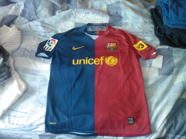 Ya me llegó la camiseta del Real Madrid que pedí a thefootballshirt.com, con el nombre de Higuaín, y perfecto, vamos, yo no noto diferencia con la original. La pedí XL y me queda un pelín larga de abajo, pero bueno, estoy emocionado de lo chula que está