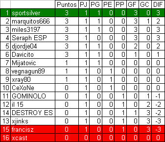 ok listo!!! mira que y eso que llevamos una jornada (anda que no va a ver piques en la clasificación) :)