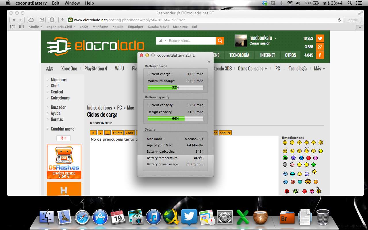 Ahi os dejo una foto de mi chiquitín que cumple 6 años en octubre, con una batería cascada por el uso, solo rinde al 66%, pero cabe destacar que en la época de esta batería (es la de fabrica) decían que solo venían preparadas para 300 ciclos...