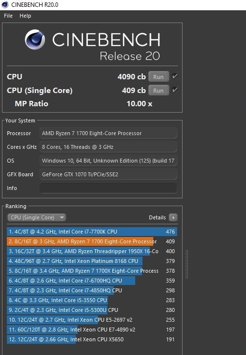 El caso es que en cinebench le hice tres test seguidos y los resultados iban variando de uno a otro: