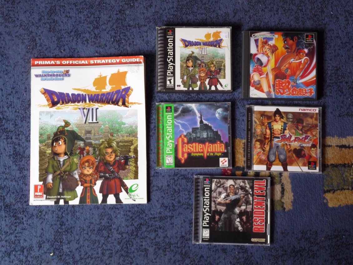 Uno de mis objetivos: El Dragon warrior VII, y encima con su guía correspondiente. El Nekketsu Oyaku era una compra tanbién pendiente desde hacía tiempo, es un Beat`em`up que sin ser de los grandes del genero es muy entretenido. El SOTN, Resident evil y el Soulblade quería también tenerlos en NTSC.