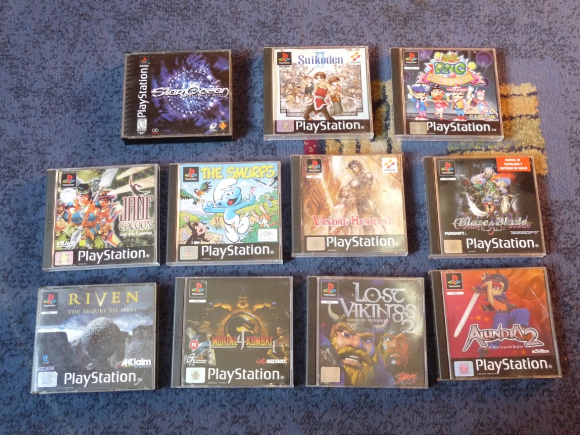 Unos cuantos RPG, los Final Fantasy con algunas guías, junto el genial Suikoden , Parasite Eve 2 , Alundra, Wild Armas y el más que interesante Legend Of kartia