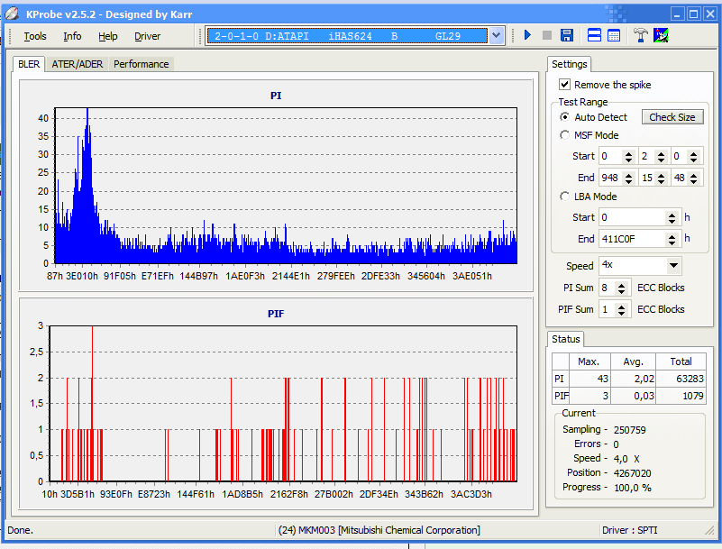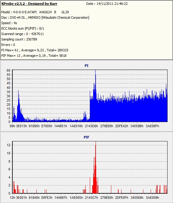 · PIF (Parity Inner Failures): No larger areas on the disc should exceed 4 PIF-1 errors, do not worry too much about high single spikes that exceed 4.
