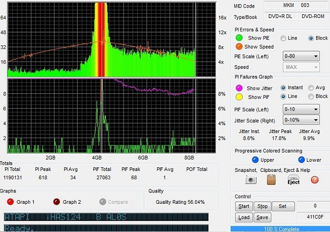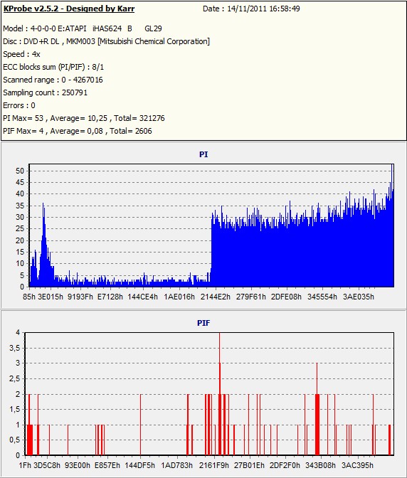 EDITO: Los errores PI parecen un poco elevados en número y en Avg. A ver que tal te salen el resto de copias. Revisa si has activado el FHT correctamente y has apagado/encendido el pc/grabadora antes de grabar. Resultados muy parecidos al tuyo obtuvo LIGHTING UK al no activar el FHT: