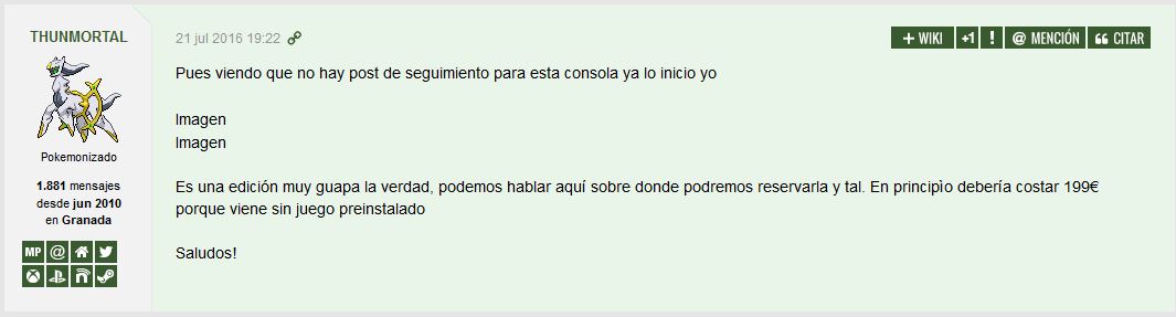 Pues viendo que no hay post de seguimiento para esta consola ya lo inicio yo