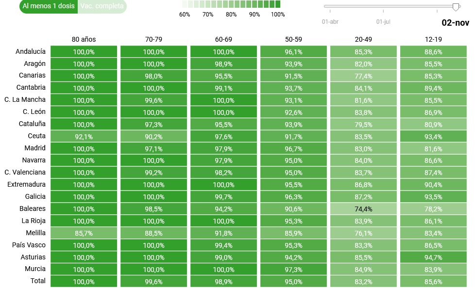 Datos generales por edades en España de personas con una dosis a 28 de octubre: https://www.eldiario.es/sociedad/vacuna ... 82953.html