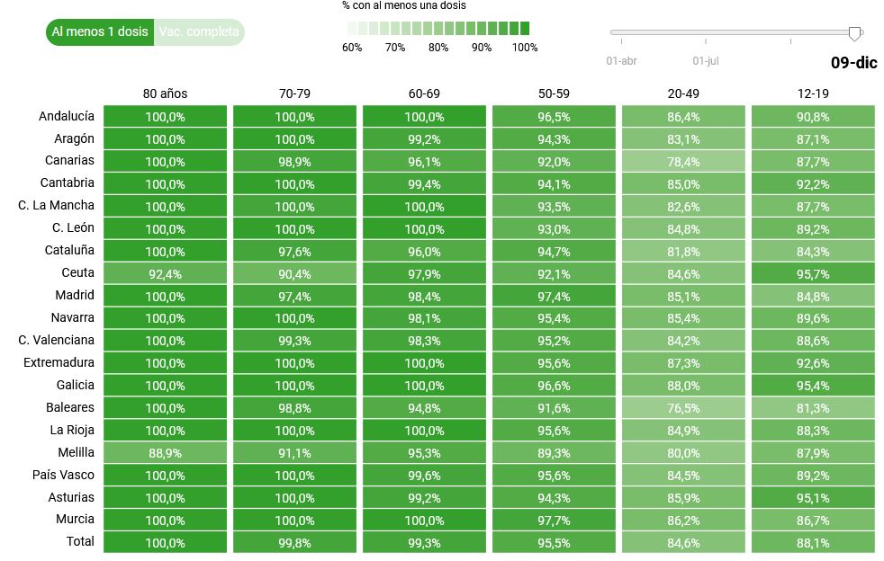 Datos generales por edades en España de personas con una dosis a 26 de noviembre: https://www.eldiario.es/sociedad/vacuna ... 82953.html