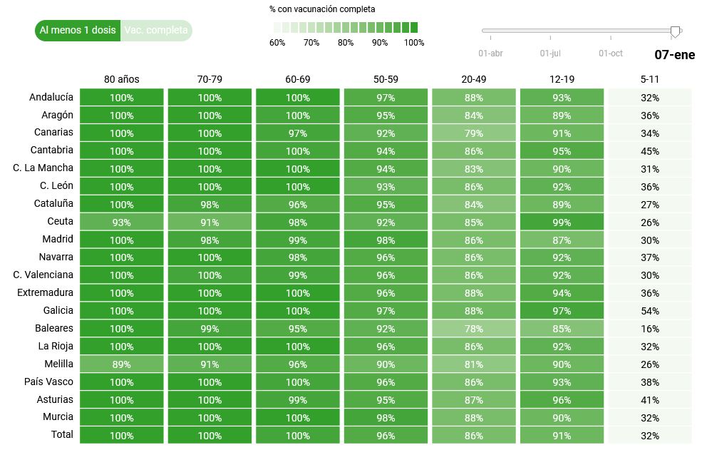 Datos generales por edades en España de personas con una dosis a 23 de diciembre: https://www.eldiario.es/sociedad/vacuna ... 82953.html