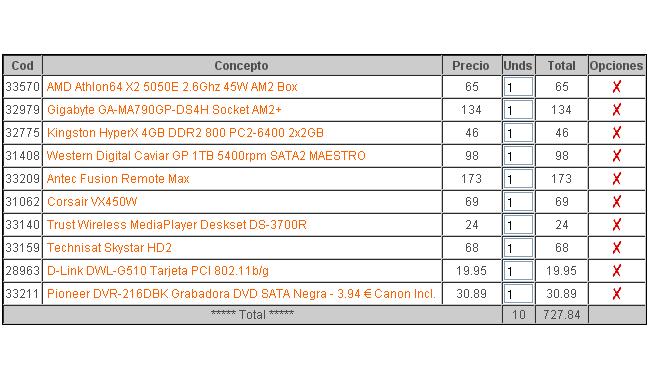 Pd: En cuanto al resto de componentes,...., la cosa es más flexible, ya que una unidad de dvd, una tarjeta de tv, más disco duro,... si es fácil y