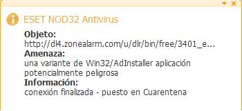 El problema de lo que os comentaba del zonealarm es que la alarma no salta al instalar la barra esa de publicidad, sino simplemente antes de la instalación, cuando se está bajando el programa.