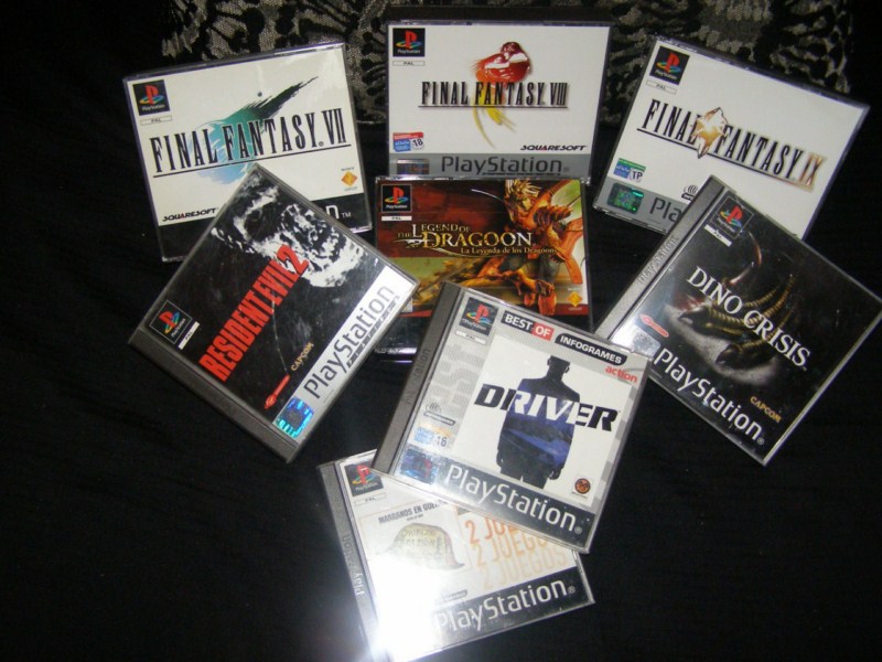 Edito: No tengo claro lo de insertar imágenes, no se si podéis ver la foto que subí: Driver, Final Fantasy VII, VIII y IX, Legend of Dragoon, Dino Crisis, Resident Evil 2 y Hogs of War