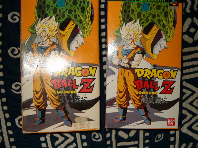 El de la derecha parece el original, pero yo diria que ninguno de los dos es original, mas que nada, ninguno de los dos lleva el sello de "toei", y digo esto porque yo una vez me compre en el 1997 o por ahi el super juegazo Dragon ball z Ultra gokuden 2, tenia (y sigo teniendo) la primera parte, me encanto, y luego en el bazar pishu de las galerias del puerto encontre la segunda parte.