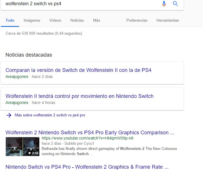 Si el primer resultado que sale buscando "Wolfenstein 2 PS4 vs Switch" es con una PS4 normal y lo han enlazado muchos medios con esta noticia.